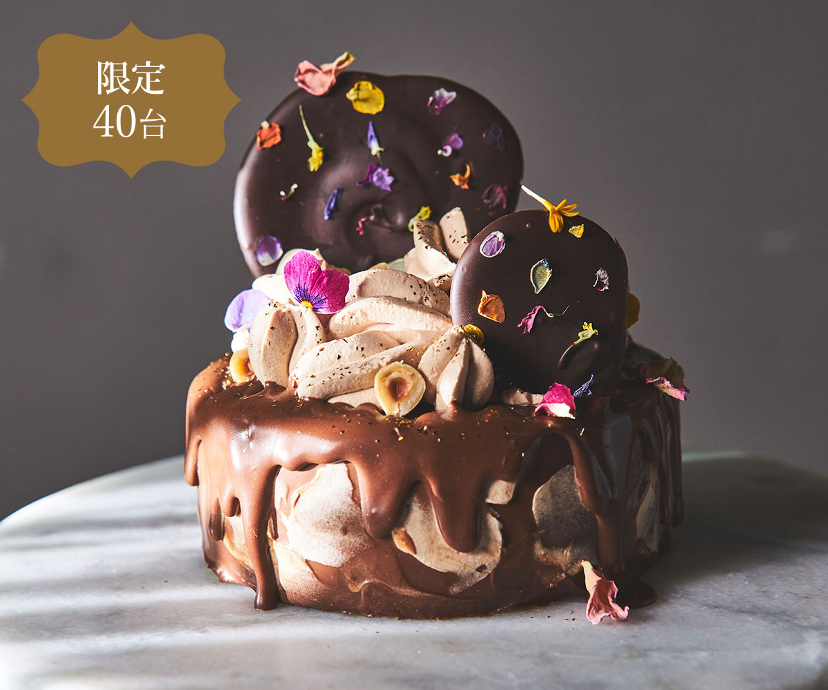ミルクとビターが重なり合うチョコレートムースに、軽やかなシャンティと香ばしいフロランタン。静かな夜に煌めきを添える、特別感あふれる一品。